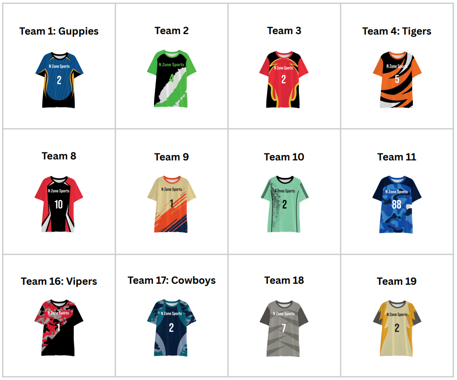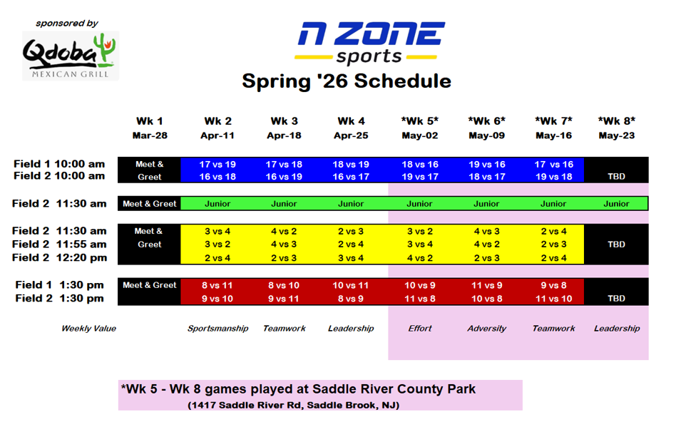 The official team colors of N Zone Sports Bergen County's Spring 2026 Flag Football League!