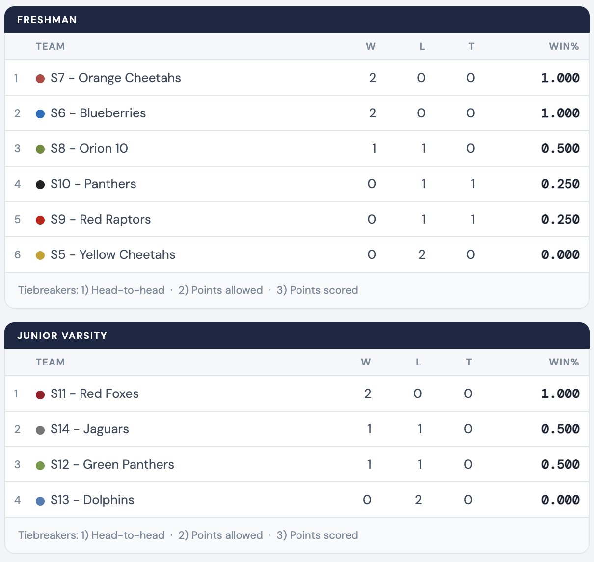 Bend Spring Soccer Standings