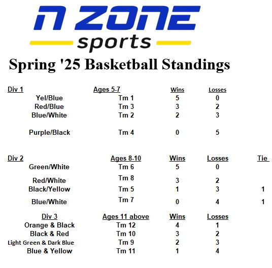 Spring 25 Basketball Standings