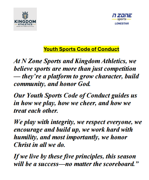What makes N Zone Sports Lonestar different? We focus on the best elements of youth sports programs, while eliminating many typical drawbacks. For children, this means that everyone gets to play, requests to play on a team with a friend or sibling are honored whenever possible, and we focus on positive achievements. For parents, this means that your child’s s program will contribute to their life rather than controlling yours: our practice and game schedule is parent-friendly, and you will not be forced to participate in fundraisers or to serve as a mandatory “volunteer.” We also increase your peace of mind by requiring comprehensive background checks for coaches and assistant coaches. We aim to make kids’ sports a great experience for the entire family.