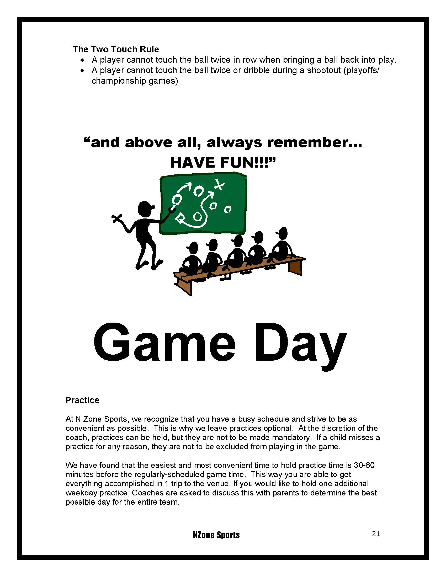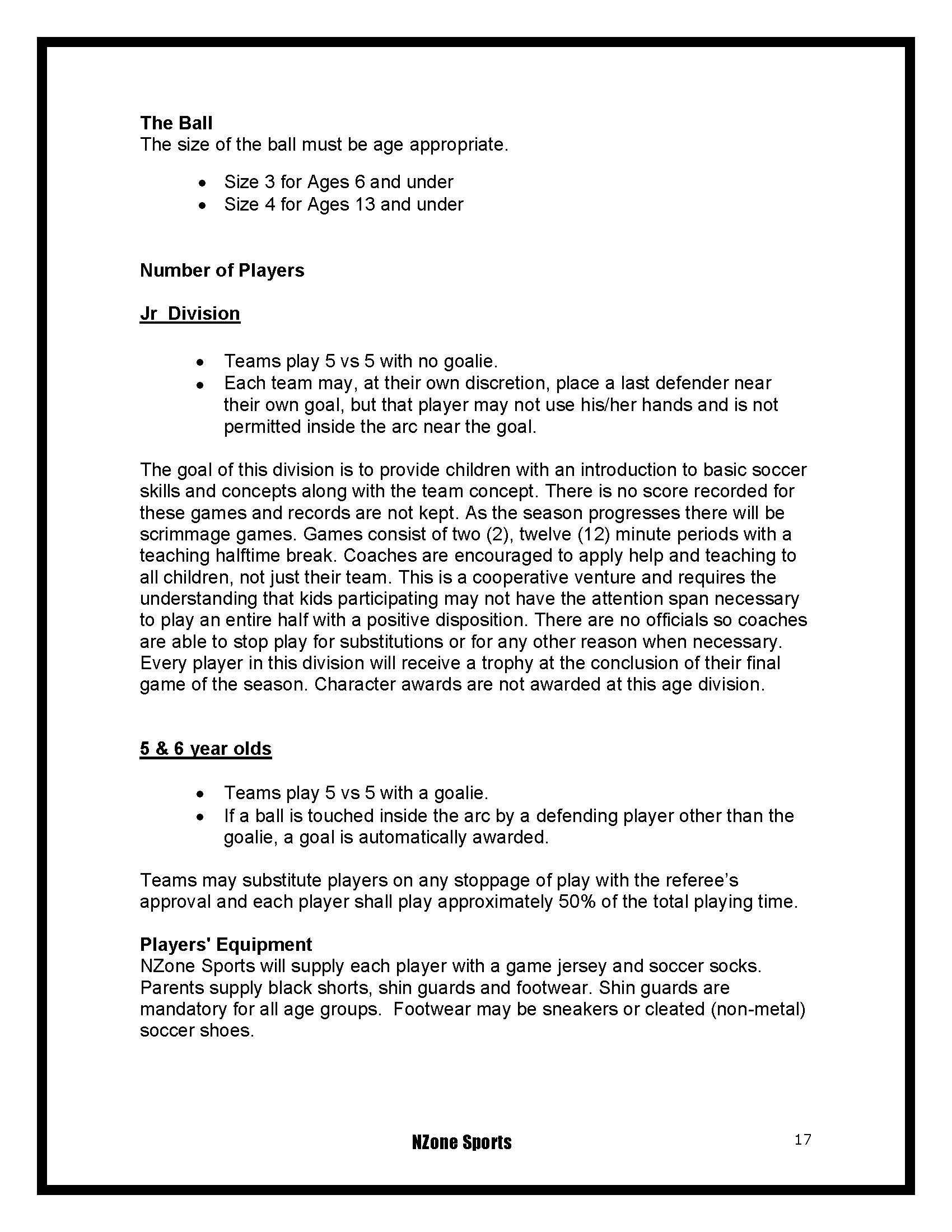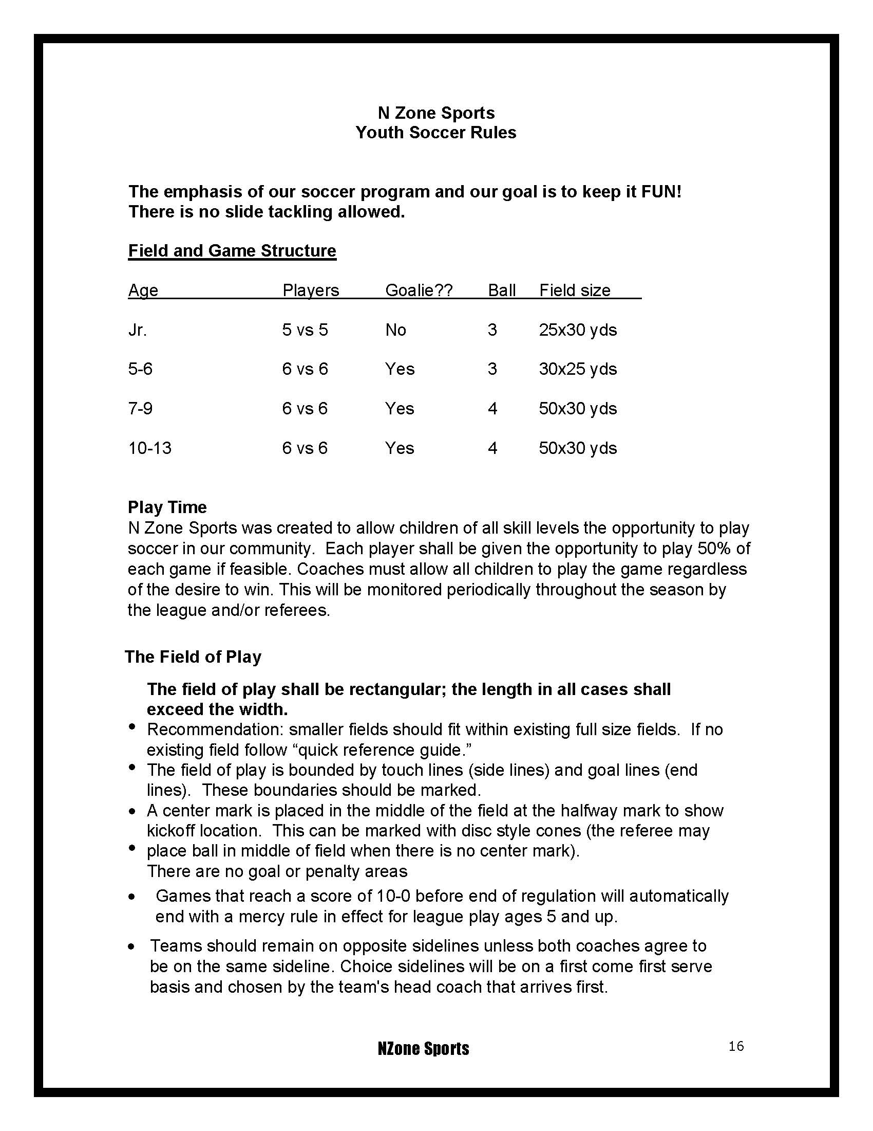 UPDATED/NEW RULES: PLAY TIME pg. 16, MERCY RULE pg. 16, TEAM SIDELINES pg. 16, CARDED PENALTIES pg. 19, THE TWO TOUCH RULE pg. 21