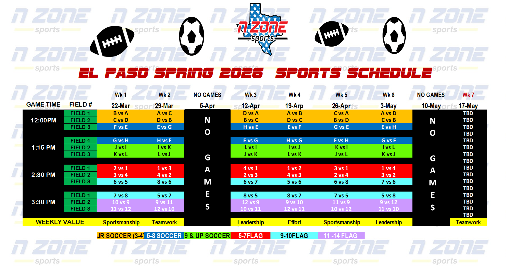 All games will be played Sunday afternoons at the Galatzan Recreation Center 650 Wallenberg Dr, El Paso, TX 79912