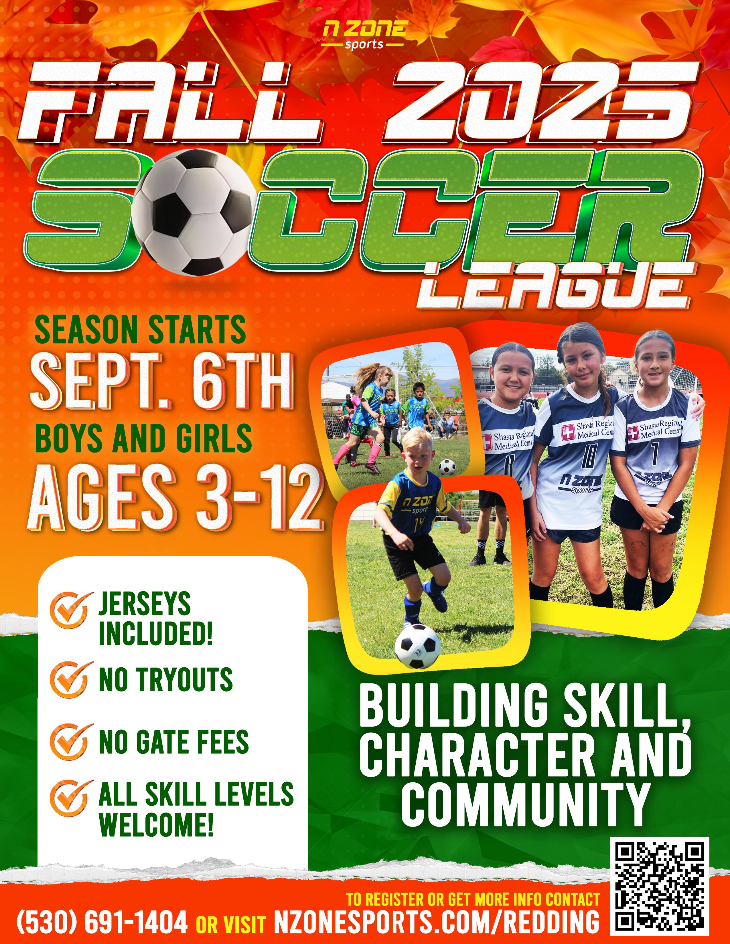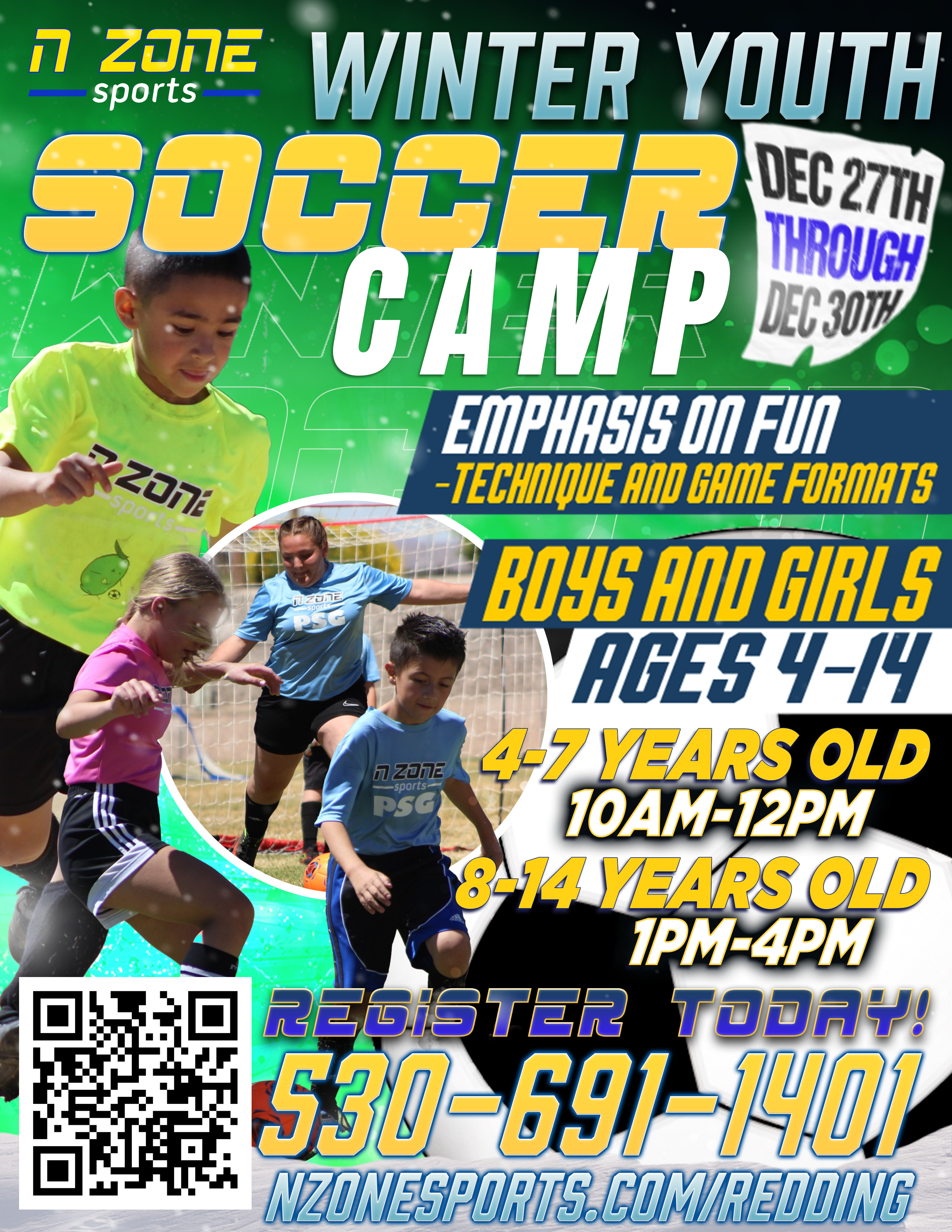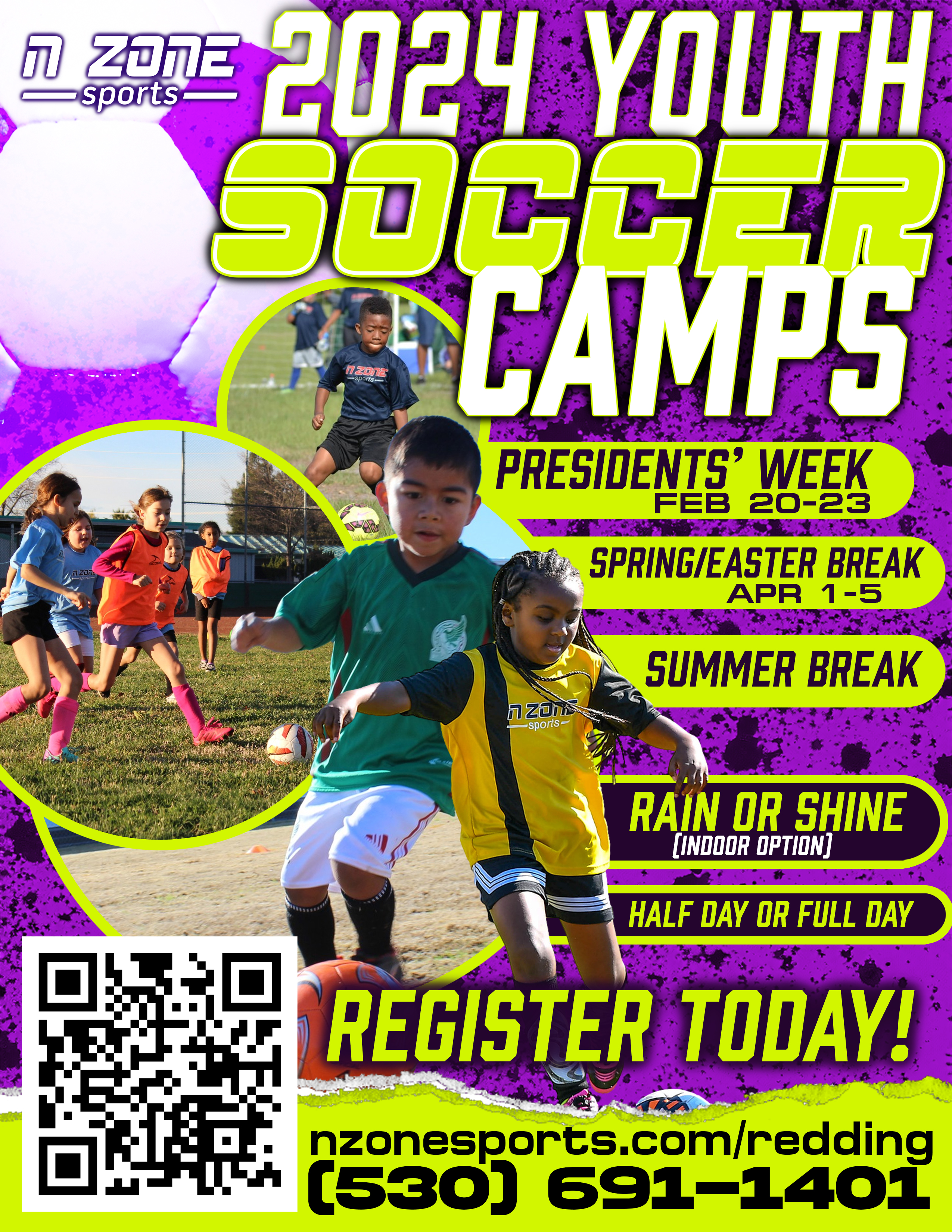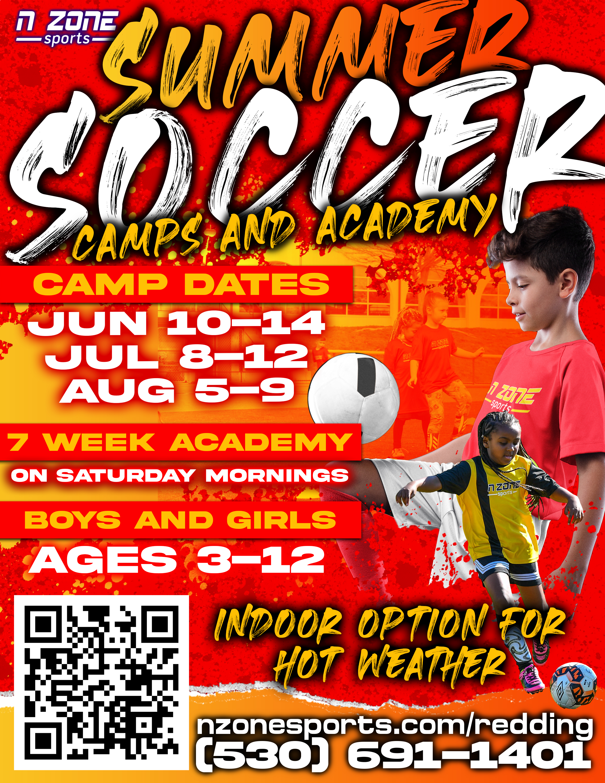 Soccer camps in Redding - for boys and girls Ages 3-12: full-day and half-day/morning camps with Indoor option for hot weather