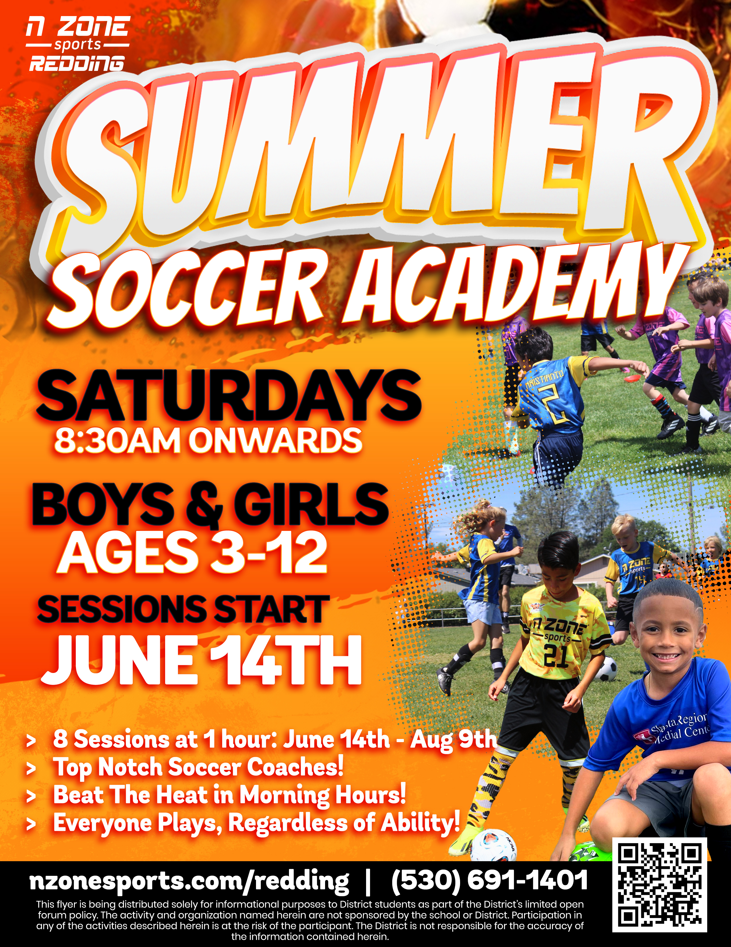 Soccer Academy in Redding - for boys and girls Ages 3-12: on Saturday morning