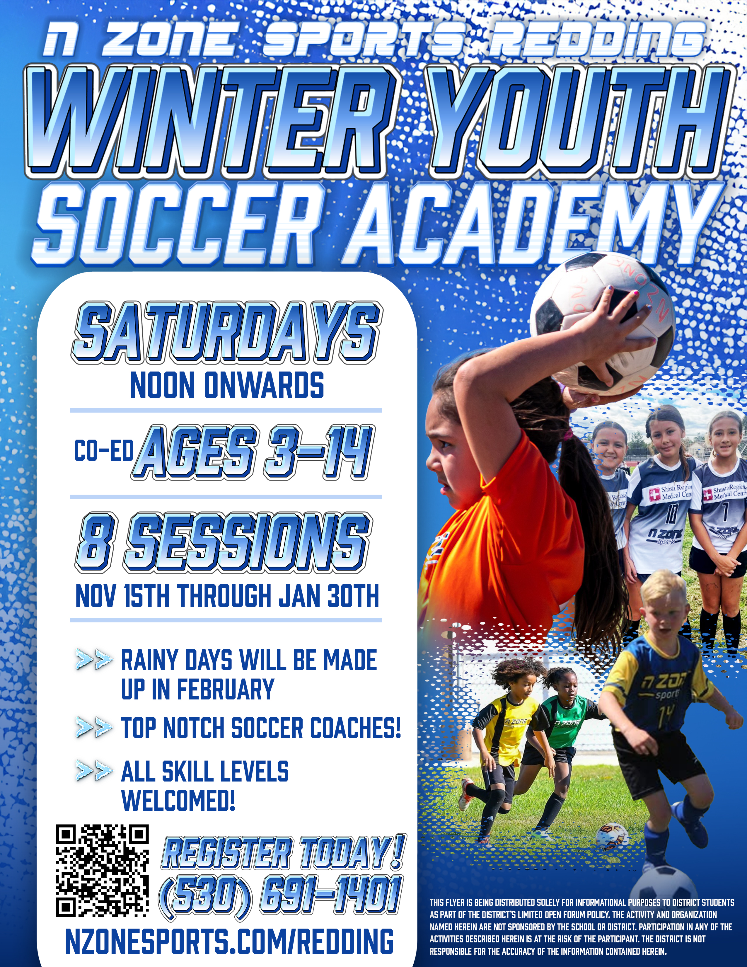 Away from the screen and onto the field :-) Our Winter Youth Soccer Camp for Boys and Girls ages 4-14 is open for registration!